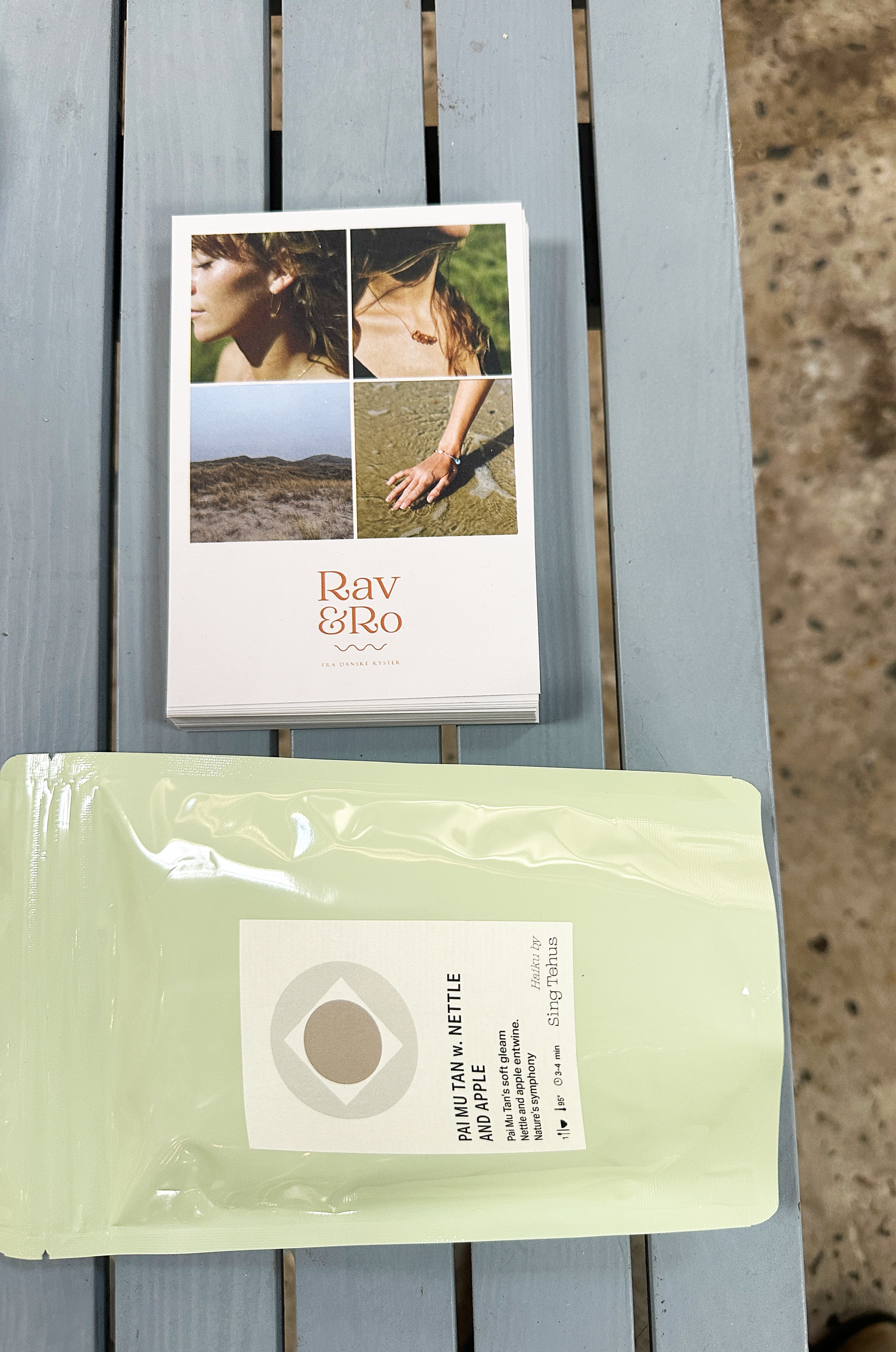 Hvid te med brændenælde, æble og kornblomst fra Sing Tehus, som er grundlagt af Mette Marie Kjær. Det særlige ved dette sted er, at tehuset er dedikeret til at give dig en autentisk og nærværende teoplevelse, og det synes jeg virkelig man mærker, når man drikker den. Den smager af nordiske toner, kvalitet og godt håndværk. Jeg er derfor stolt over at kunne sælge den til jer.